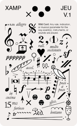 XAMP JEU is a set of cards used to play with the musical possibilities and combinations of an instrumentarium (ex. XAMP).